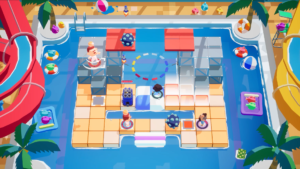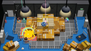 ▲相手にぶつかり、場外へ吹き飛ばせ! 予測不能なアイテムの数々が戦いを盛り上げます。